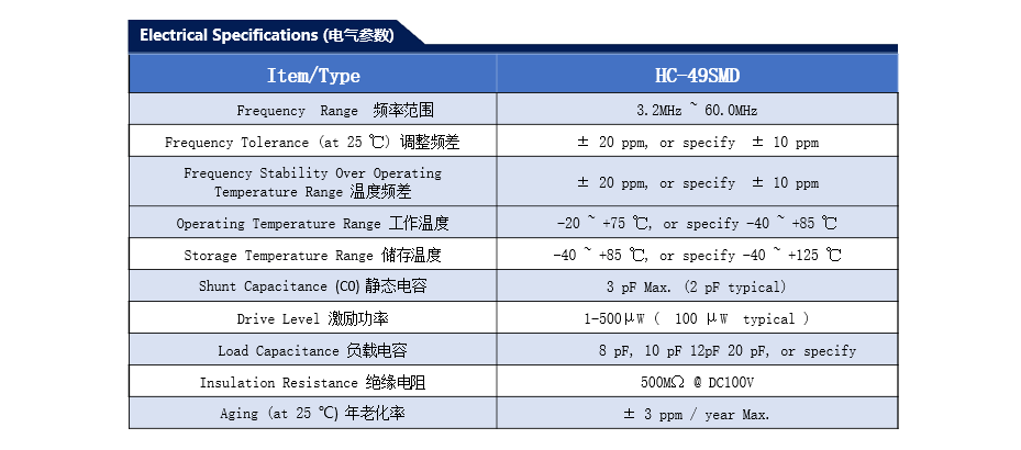 貼片 無源晶振 HC-49S 3.2~60.0MHz 8~20PF ±20PPM