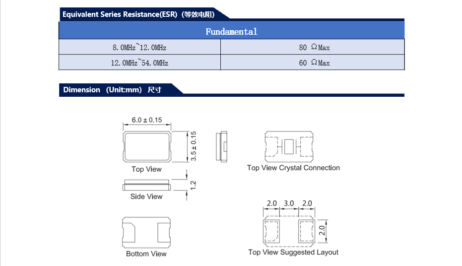 無源晶振 貼片 60S 8.0~54.0MHz 8~20PF ±20PPM