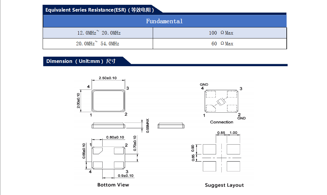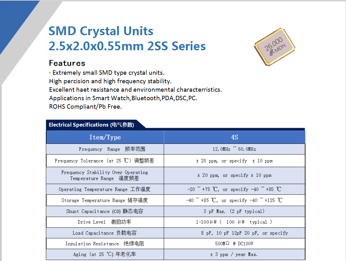 無源晶振 貼片 25S 12.0~60.0MHz 8~20PF ±20PPM