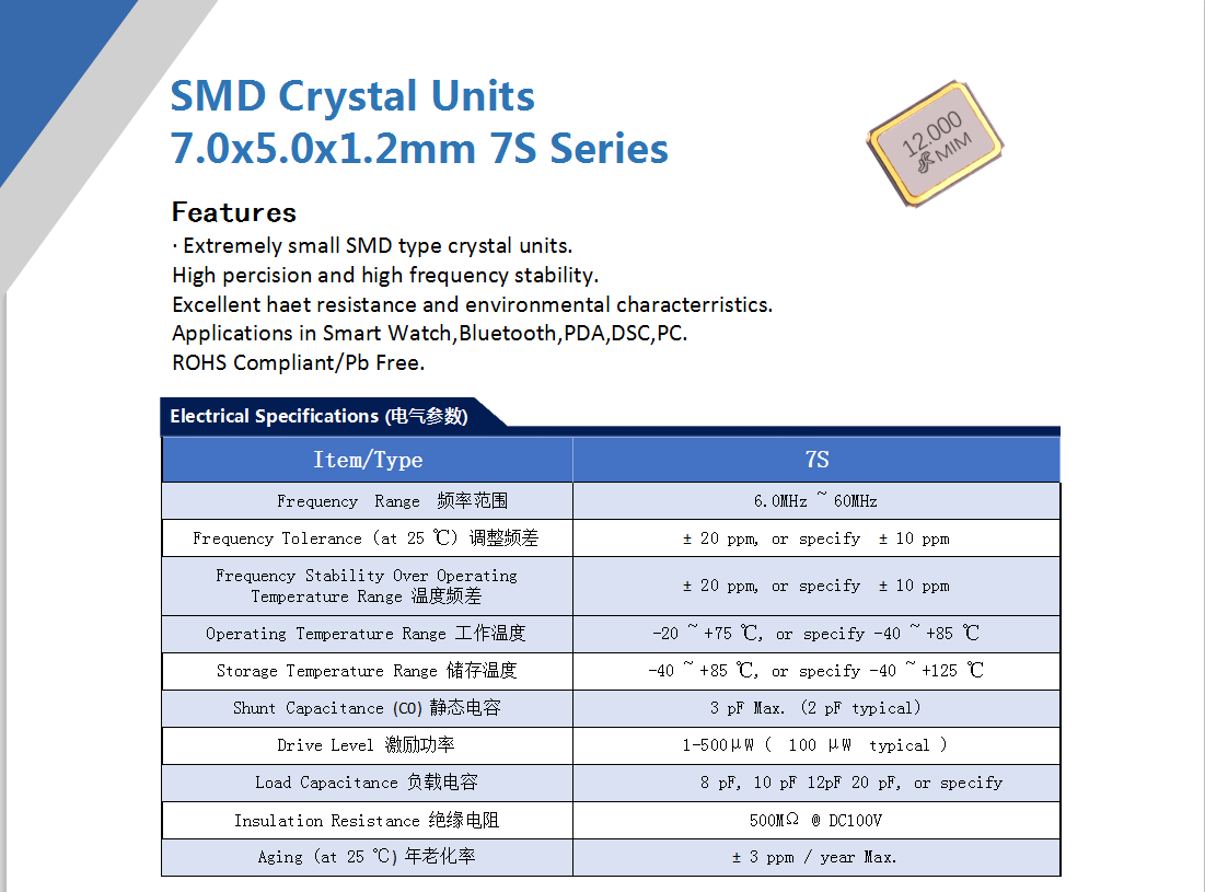 無源晶振 貼片 70S 6.0~60.0MHz 8~20PF ±20PPM